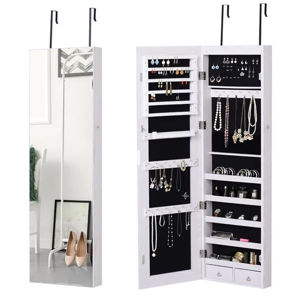 Gardez tous vos bijoux joliment exposés et bien organisés avec cette armoire à bijoux avec miroir par HomCom.