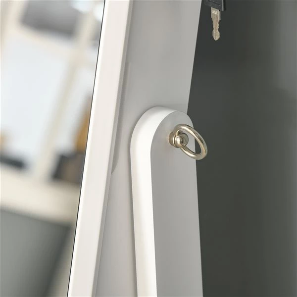 Avec cette armoire HomCom, vous pouvez garder tous vos bijoux organisés et accessibles. Il y a 100 emplacements pour boucles d’oreilles, un porte-bracelet, 24 crochets pour colliers, 105 emplacements pour bagues et 4 étagères de rangement, vous permettant de tout garder au même endroit.