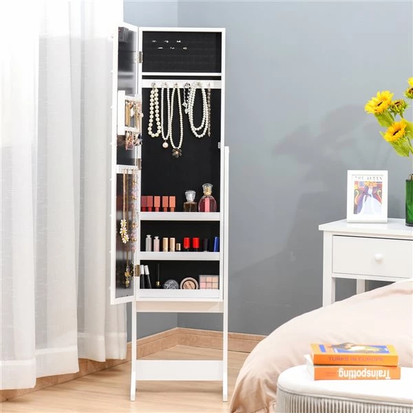 Gardez tous vos bijoux joliment exposés, bien organisés et facilement accessibles avec cette armoire à bijoux avec miroir pleine longueur par HomCom.