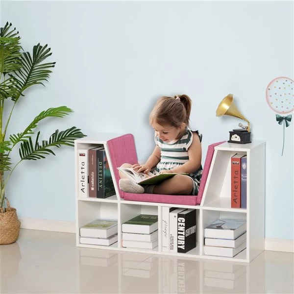 Conçue avec un coin lecture coussiné, cette bibliothèque peut offrir un confort luxueux pour se détendre pendant la lecture. Fabriquée à partir de panneaux de particules de haute qualité pour une meilleure stabilité. Le coussin de siège est recouvert de lin durable pour une utilisation à long terme.