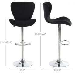 Tabourets de bar pivotants noirs Homcom en lin avec hauteur ajustable, ensemble de 2