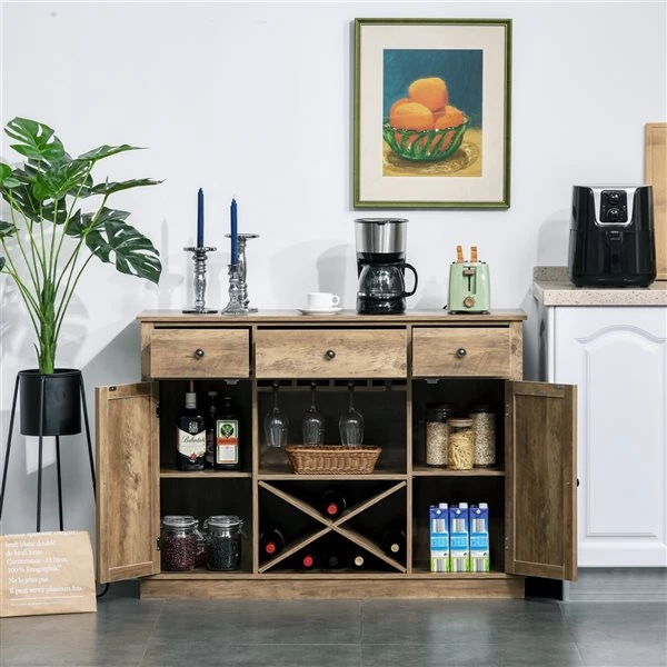 Ce buffet HomCom est conçu avec un style rétro qui s’intègre parfaitement dans n’importe quel décor. Le rangement à vin est conçu pour que les amateurs de vin puissent profiter et exposer leur collection de bons vins.