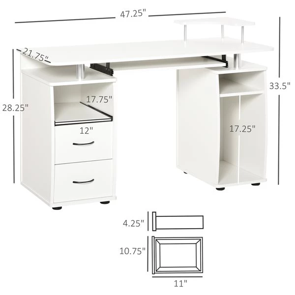 Ce bureau d’ordinateur de HomCom est idéal pour n’importe quel espace de travail, tant professionnel que personnel. Comprenant beaucoup d’espace de rangement, il constitue l’addition parfaite dans un bureau.