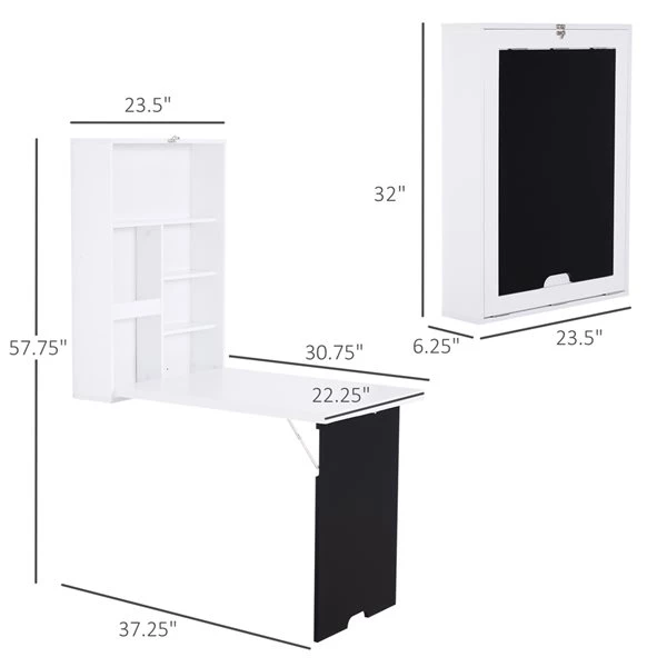 Profitez au maximum de votre espace existant avec le bureau convertible, pliable et élégant par HomCom. Il sert à la fois de surface de travail et d’espace de rangement partout où vous en avez besoin. Transformez un espace vide en votre propre espace de travail, d’étude ou d’écriture. Si vous souhaitez plus d’espace pour faire vos travaux ou simplement pour mettre de l’ordre dans votre maison, ce bureau offre une solution soignée et ordonnée.