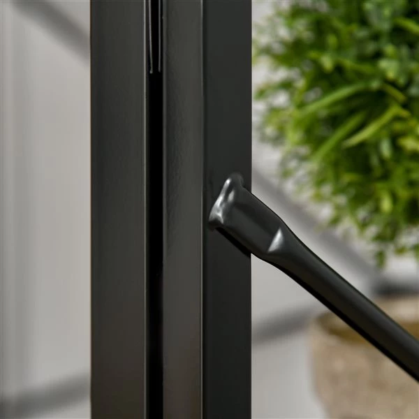 - Cadre mĂ©tallique avec poteaux de renfort en forme de X Ă l’arrière pour une structure solide