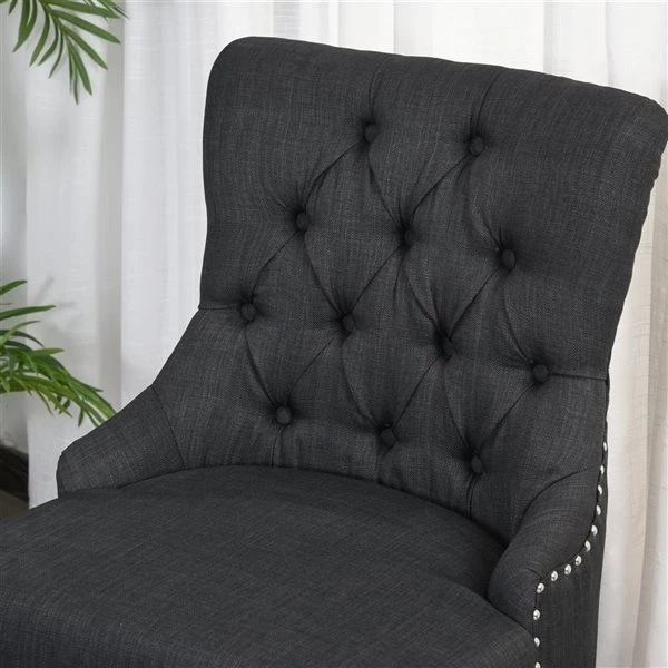 Tabourets de bar pivotants noirs Homcom en lin avec hauteur ajustable, ensemble de 2