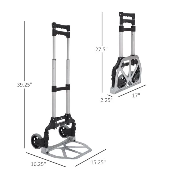 Rendez vos voyages avec de nombreux sacs et bagages faciles et agréables grâce à ce chariot à bagages de HomCom. Avec son design pliable, il peut être utilisé pour une variété de sacs de différentes formes et de dimensions. Il est doté d’une base solide et de deux roues lisses pour un voyage impeccable à chaque fois.