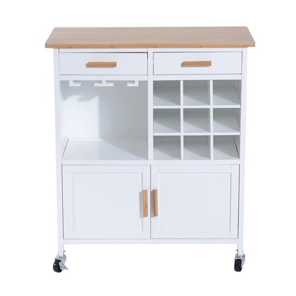 - Multiples options de rangement avec 2 tiroirs coulissants, 1 armoire, 1 Ă©tagère infĂ©rieure et 1 porte-bouteilles de vin pouvant contenir jusqu’Ă 9 bouteilles