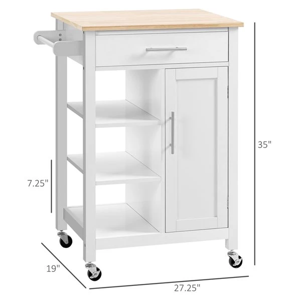 Ce chariot de service est une option idéale pour votre maison. Muni de roues, ce chariot peut rouler d’une pièce à l’autre pour plus de commodité. Un tiroir pratique, une armoire dissimulée, des étagères ouvertes et un porte-serviettes offrent un espace de rangement suffisant pour vos essentiels de cuisine et de salle à manger. Rendez votre cuisine fonctionnelle grâce à ce chariot.