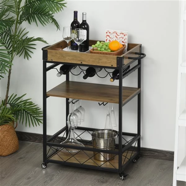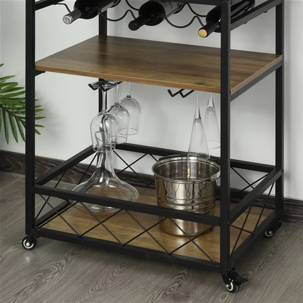 - Multiples options de rangement avec des étagères à 3 niveaux, un porte-bouteilles de vin de 5 bouteilles, des porte-verres à 2 rangées et 2 porte-serviettes