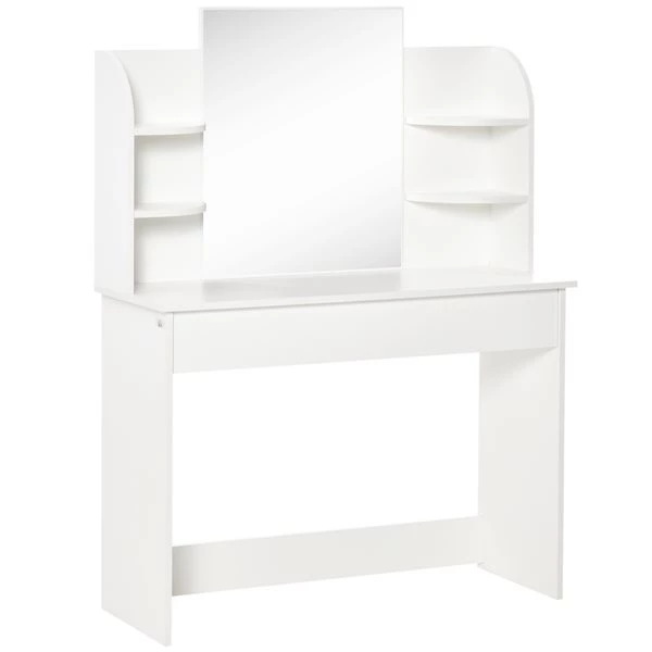 Cette coiffeuse de HomCom est dotée d’un grand plateau, d’un grand miroir et deux étagères à trois niveaux pour se coiffer et maquiller rapidement tout en gardant les produits cosmétiques bien rangés. Elle comprend également un tiroir coulissant pour offrir plus d’espace de rangement. La surface polie est facile à nettoyer. Construite à partir de matériaux de qualité pour une durabilité à long terme.