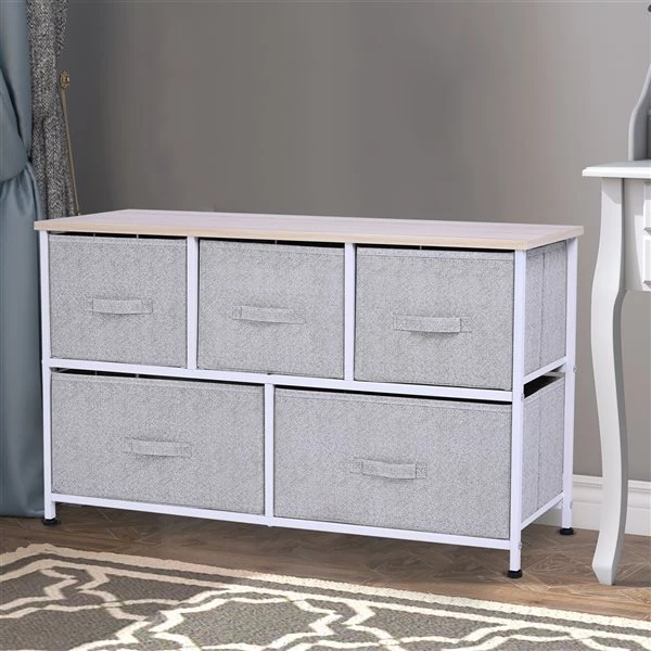 - Le dessus de commode et les 5 tiroirs amovibles en lin offrent un espace de rangement pour de nombreux articles