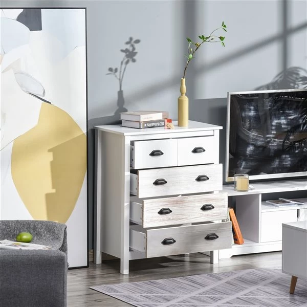 - L’aspect délavé des tiroirs ajoute une touche unique et élégante