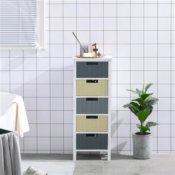 Ajoutez une touche de vitalité tout en créant plus d’espace de rangement avec cette commode HomCom. Elle est idéale pour les chambres, les salons, les salles à manger et les salles de bains avec ses tiroirs qui offrent amplement de rangement pour des chaussettes, des serviettes, des boîtes de papier mouchoirs ou d’autres articles ménagers.