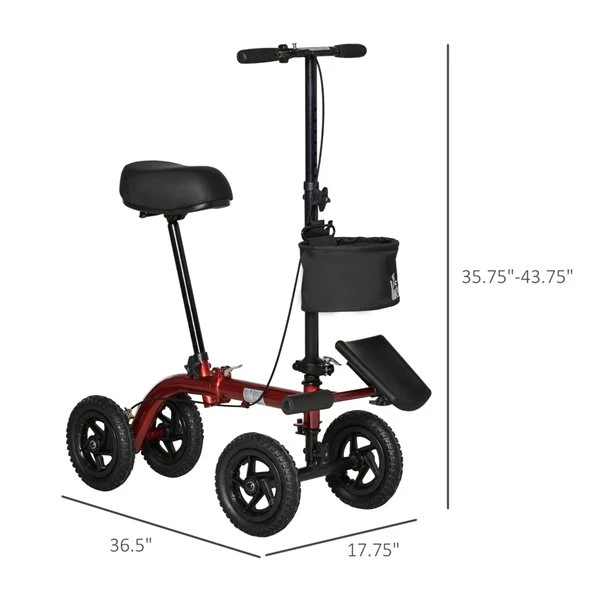 Déambulateur à roulettes pliant en aluminium noir et rouge par HomCom avec dossier de siège