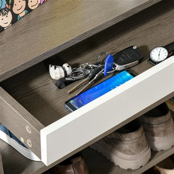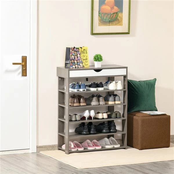 Organisez vos chaussures à l’aide de cette étagère à chaussures Homcom. Le design simple et moderne s’agence à n’importe quel décor de votre pièce. Vous pouvez y déposer vos chaussures, vos clés, vos albums photo et bien plus encore sur les étagères, le tiroir et le plateau supérieur. La conception ouverte vous permet de trouver ce que vous cherchez en un clin d’oeil. De plus, la bonne circulation d’air évite les mauvaises odeurs.
