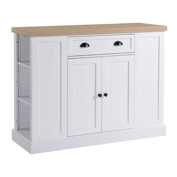 - Espaces de rangement ouverts des deux côtés, chacun avec 2 tablettes réglables