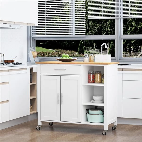 Vous cherchez à maximiser l’espace de votre cuisine? Cet îlot de cuisine présente un design simple et moderne et peut s’adapter à différents styles de décoration. Ce chariot d’îlot de cuisine a un design compact et offre beaucoup d’espace de rangement.