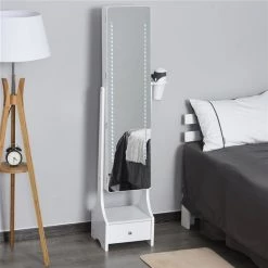 Miroir autoportant HomCom avec armoire à bijoux et lumières DEL, blanc