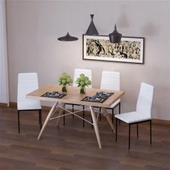Chaises de salle à manger blanches et rembourrées à haut dossier HomCom en similicuir, ensemble de 4
