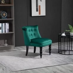Fauteuil d’appoint à dossier haut rétro HomCom en velours vert foncé
