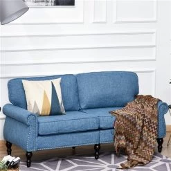 Causeuse de style milieu du siècle par HomCom en polyester bleu clair