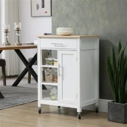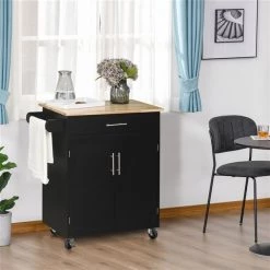 Chariot de cuisine HomCom avec base en bois gris et dessus en bois (19 po x 42,5 po x 35 po)