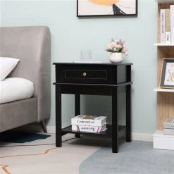 Table de chevet noire de 23 1/2 po x 15 3/4 po HomCom en panneaux MDF avec tiroir et étagère