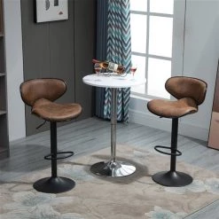 Tabouret à hauteur ajustable Homcom rembourré pivotant sans accoudoir en similicuir, brun, lot de 2