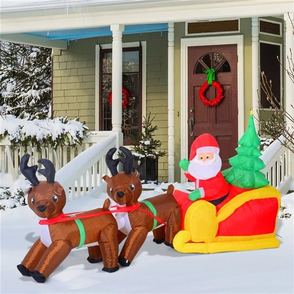 - Traîneau du père Noël avec rennes gonflable de 7 pieds