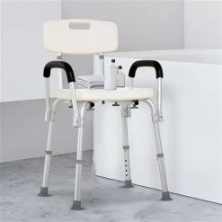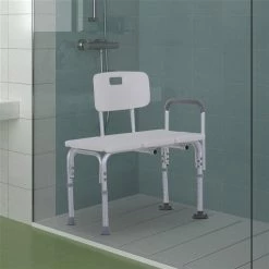 Chaise de douche autoportante de HomCom en plastique blanc, conforme à l’ADA