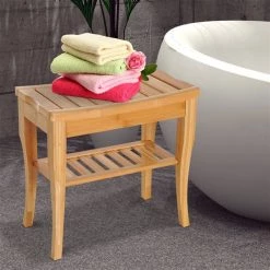 Siège de douche autoportant HomCom en bambou, conforme à l’ADA