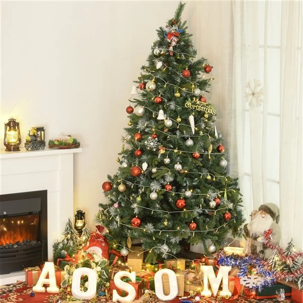 Sapin de Noël artificiel vert charnu sur pied par HomCom de 6 pi avec 210 lumières à DEL blanches