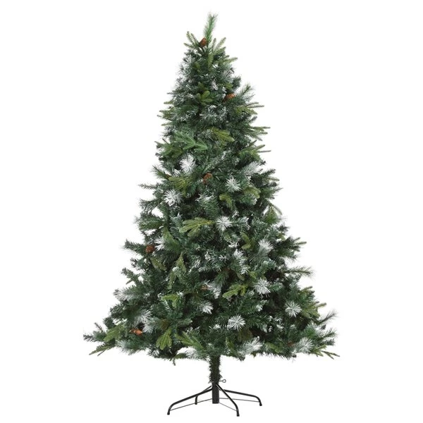 Sapin de Noël artificiel vert charnu sur pied par HomCom de style pin de 6 pi avec pommes de pin