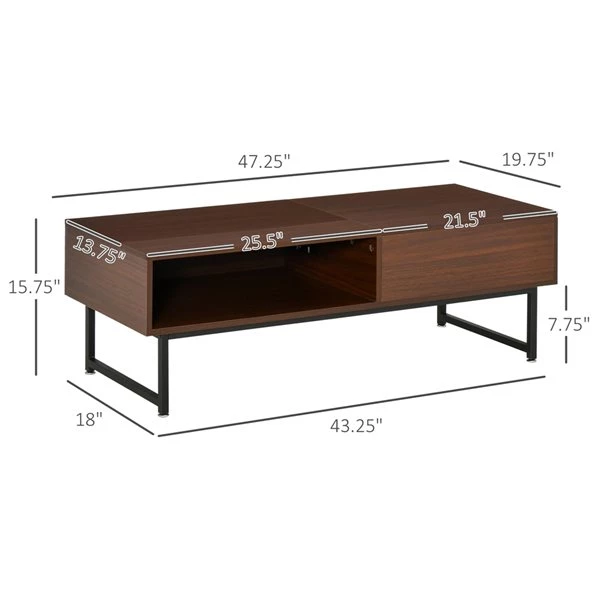 Cette jolie table basse à plateau relevable HomCom de style contemporain ajoutera une touche de modernité et d’élégance à votre intérieur. Le plateau extensible se soulève pour créer un bureau flottant pratique, révélant par le fait même un compartiment de rangement en dessous. Construite à partir de bois de qualité E1 et d’acier, cette table d’appoint élégante et fonctionnelle est facile à nettoyer et est conçue pour résister à une utilisation à long terme.