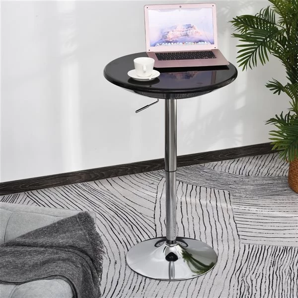 - La base ronde en métal augmente la stabilité de la table haute