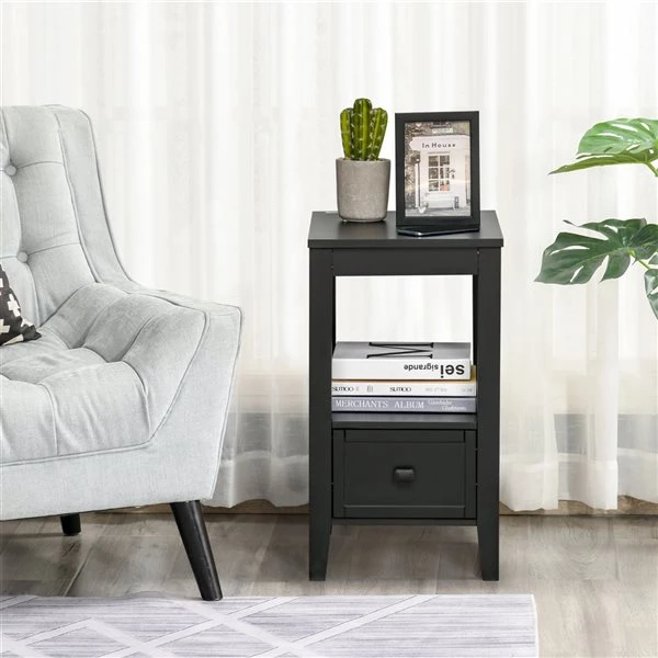 - 1 dessus de table spacieux, 1 étagère ouverte et 1 tiroir coulissant offrant beaucoup d’espace de rangement