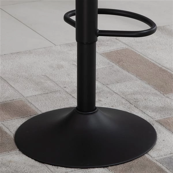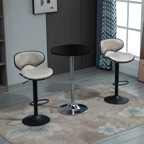 - La hauteur du siège est réglable de hauteur de comptoir à hauteur de bar alors que le siège pivotant assure une rotation libre