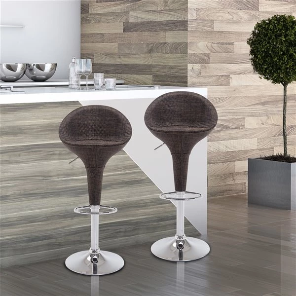 Tabourets de bar pivotants noirs Homcom en lin avec hauteur ajustable, ensemble de 2