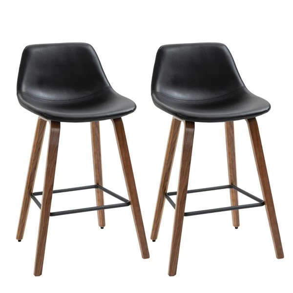 Tabourets de bar rembourrés noirs Homcom en similicuir avec repose-pieds, ensemble de 2